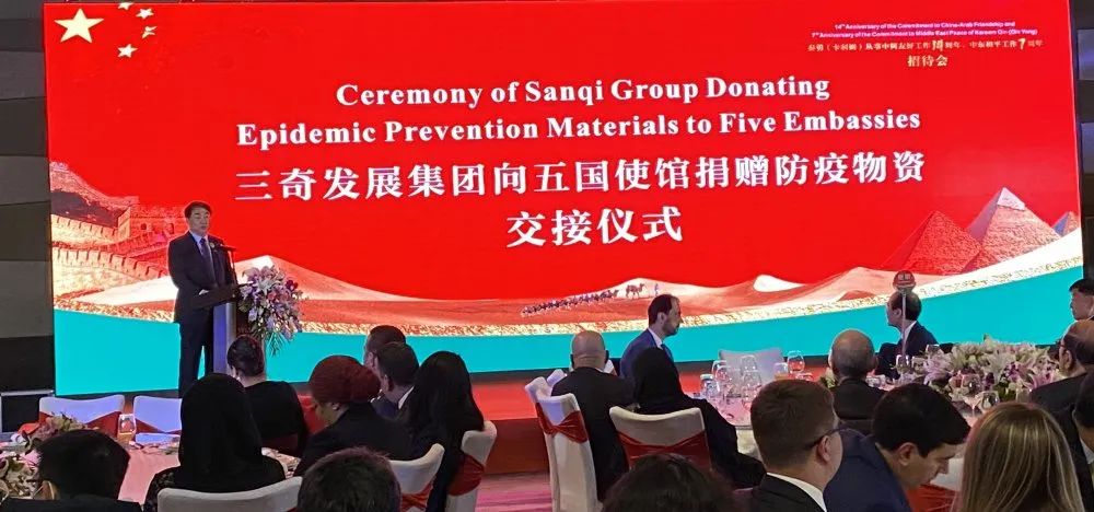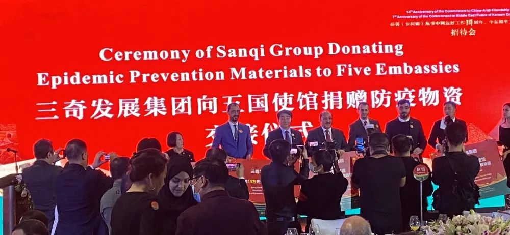 11月20日,秦勇(卡利姆)從事中阿友好工作 14 周年中東和平工作 7 周年招待會在北京舉辦。受中國阿拉伯交流協(xié)會與中國國際經(jīng)濟技術(shù)合作促進會邀請,三奇參加此次會議并向駐華使館捐贈防疫物資。議會上,董事長王常申發(fā)表致辭并與駐華使館負(fù)責(zé)人交流。