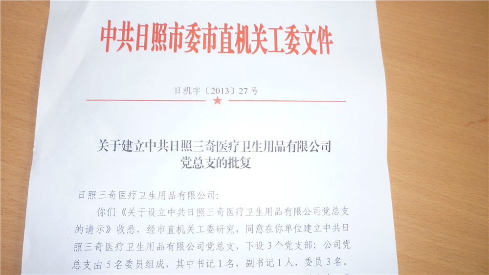 2013年11月11日,日照市直機關工委正式批復我公司,同意成立三奇醫(yī)保集團黨總支。黨總支下設三個黨支部,分別為后勤黨支部、生產(chǎn)黨支部和合資黨支部。12月27日黨總支召開黨員大會,選舉產(chǎn)生了第一屆總支部委員會和各支部委員會。...